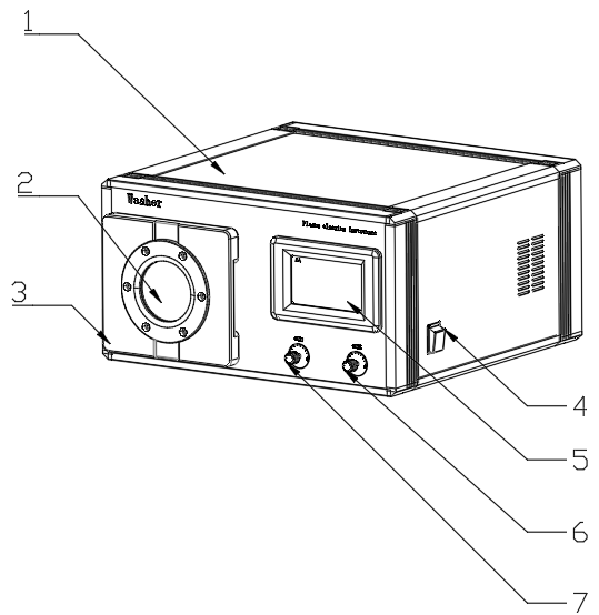 1—機(jī)箱;2—耐熱玻璃清洗艙;3—清洗艙門;4—總電源開關(guān)