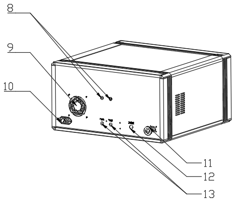8—選配清洗氣源進(jìn)氣口Ⅲ、Ⅳ;9—散熱風(fēng)扇;10—電源輸入插孔